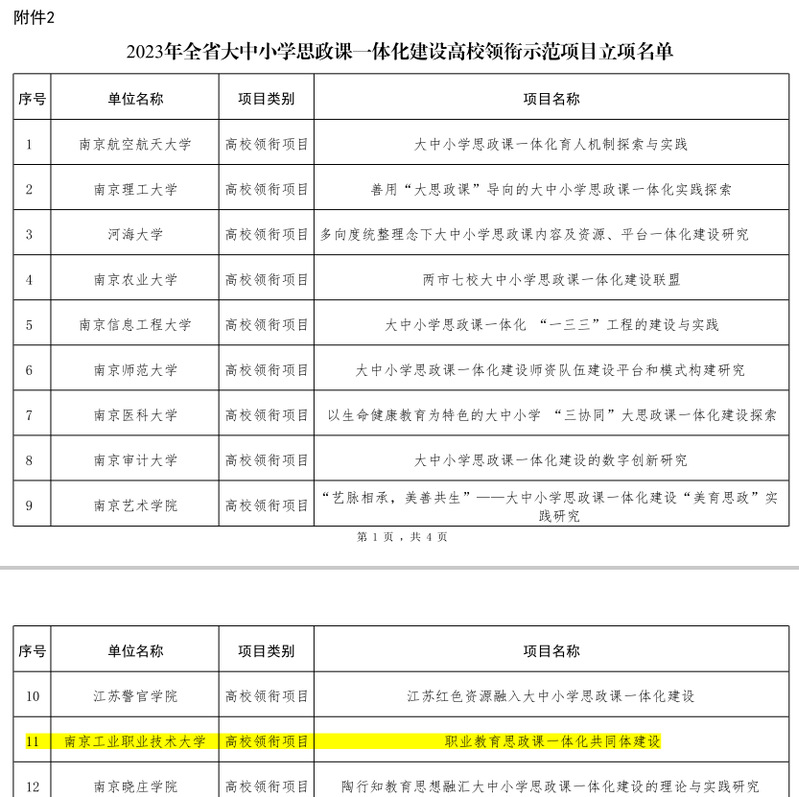 近日,江苏省教育厅发布《关于公布2023年全省大中小学思政课一体化建设示范项目的通知》,由马克思主义学院组织申报的《职业教育思政课一体化共同体建设》项目获得全省大中小学思政课一体化建设高校领衔示范项目立项。