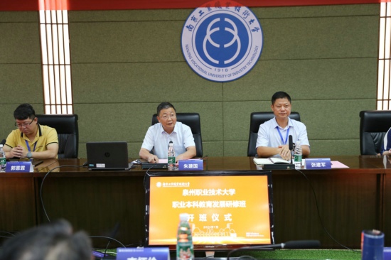 7月25日上午,泉州职业技术大学职业本科教育发展研修班开班仪式在行政楼辅楼二楼会议室顺利举行。来自泉州职业技术大学的副校长张建军、郭霏霏、校长助理苏康敏、王巨斌以及专业带头人、教师骨干、管理骨干等40人参加了本次研修班。taptap党委常委、副校长朱建国,商务贸易学院党委书记邢益军、院长阮晓文,继续教育学院院长、黄炎培教师教育学院院长马多勇出席了开班仪式。阮晓文主持开班仪式。