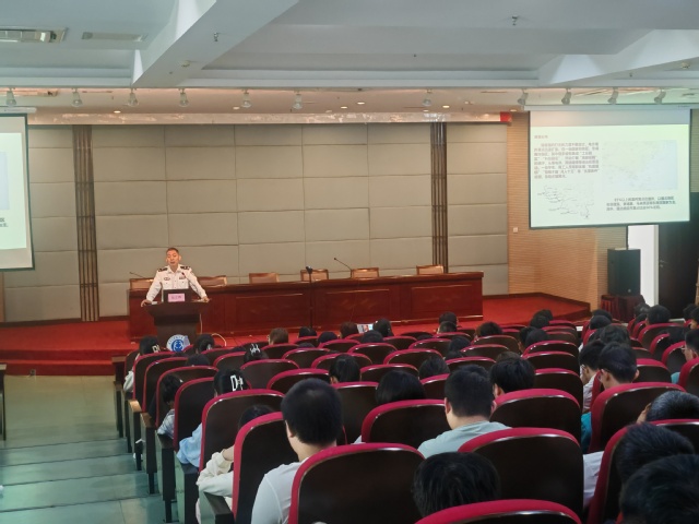 10月12日下午,航空工程学院联合计算机软件学院在仙林校区学术交流中心报告厅开展反诈骗安全教育专题讲座。栖霞区公安分局内保大队二级高级警长陆正辉作题为《筑牢安全防线 共创美好明天》的专题报告。航空工程学院党委书记李晓雯,计算机与软件学院党委书记刘英慧、副书记张振峰,全体辅导员,学生代表共有280余人参加本次讲座。航空工程学院副院长(协助分管学生工作)王立彦主持会议。