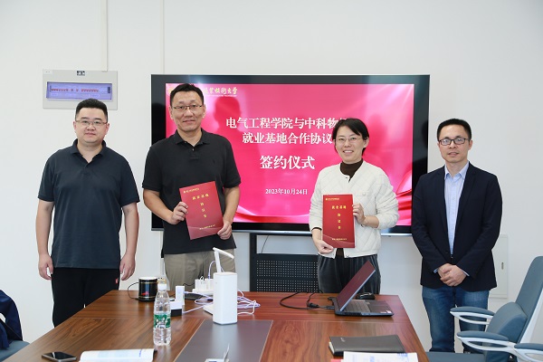 10月24日上午,南京麒麟科创园管委会麒麟汇智企业服务有限公司总经理赵凯、中科物栖(南京)科技有限公司董事长兼总经理张磊一行应邀来到我院访问交流,电气工程学院党委副书记、副院长吴佳男,副院长李镇(挂职)参加交流。双方签订毕业生就业基地合作协议,并就校企合作、学生创新教育达成合作意向。