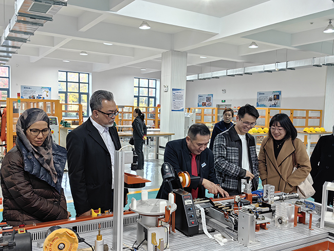 哈希姆感谢学校热情接待,他着重介绍了马来西亚职业教育的发展体系、办学特点、教育理念和发展愿景和吉隆坡直辖区相关教育机构的基本情况。马来西亚政府通过制定职业技术教育转型计划和教育发展蓝图等国家政策,不断强化职业技术教育发展的政策保障与资金支持。通过对职业技术教育的支持,培养具有优秀道德、技术娴熟、知识丰富、具有营销和创业能力的高素质劳动力。他表示,吉隆坡直辖区非常重视职业教育,制定了“提高收入、提升企业家竞争力、提高人文素养、倡导终生学习和培训专业技术”的职业技术教育五大目标。近年来,政府不断加大投入,期待能与taptap在师资培养、专业共建、教师研修、学生研习和境外办学项目拓展等方面进一步深化合作。