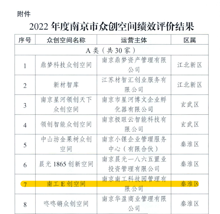 近日,南京市科学技术局发布了《市科技局关于公布2022年度市众创空间绩效评价结果的通知》(宁科〔2023〕56号),taptap大学科技园E创空间被评为“优秀(A类)”。