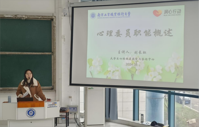 心理委员代表、2023年仙林大学城优秀心理委员张缪翔分享了自己作为朋辈心理工作者的经历和感悟。他以自己在任期间举办的各项活动和取得的阶段性成果为例,分享了对朋辈心理工作者职责的理解:要始终保持一颗热爱心理工作的初心,要有强烈的责任感,要善于沟通懂得协作,以举办各项心理活动为契机,提升同学们对自己心理健康的关心关爱水平。