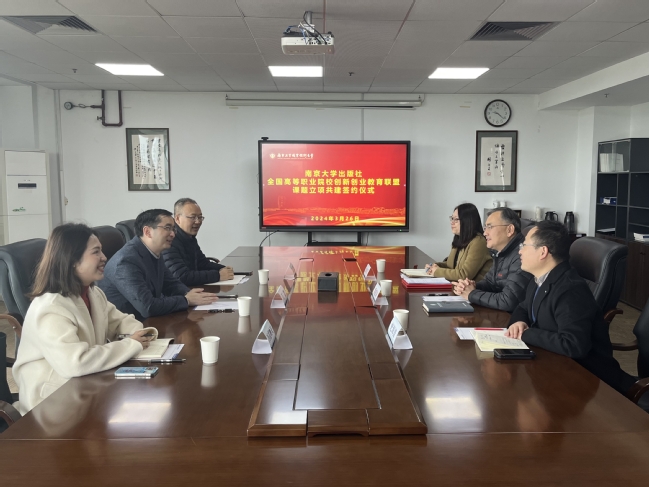 签约仪式上,潘旭海副校长介绍了全国高等职业院校创新创业教育联盟的基本情况,以及taptap国家双创示范基地、国家级双创学院等重点平台,希望双方以本次合作为起点,打造品牌影响力,互利共赢。石磊介绍了南大出版社的五个重点业务板块,出版社现在正值成立40周年,希望通过与创盟深入合作,共同提升学术影响力。