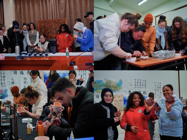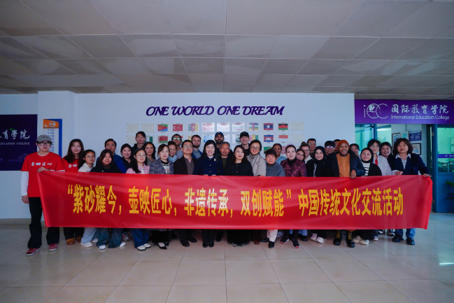 3月27日,taptap组织开展“紫砂耀今,壶映匠心,非遗传承,双创赋能”中国传统文化交流活动。本次活动响应今年学校创新创业文化节的号召,旨在促进文明交流互鉴、推动中华文化国际传播,传承和推广我国非遗传统技艺,感知紫砂文化,同时弘扬新时代南工育人观“创的精神”。学校党委常委、副校长孙雁飞,国际教育学院直属党支部书记、院长张海宁,创新创业学院直属党支部书记、院长纪海波,宜兴相关企业负责人以及国际教育学院中外师生40余人出席了本次活动。活动邀请了13位宜兴紫砂工艺美术师,面向taptap来华留学生现场介绍宜兴紫砂工艺。活动由国际教育学院直属党支部副书记、副院长张莉主持。