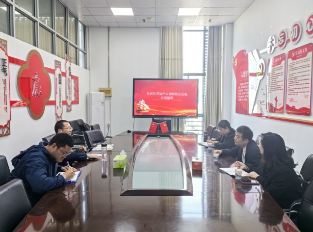 4月9日,比亚迪汽车售后服务事业部、售后培训部技术课程开发科科长任鹏,中车云商市场部项目经理贾盈波、魏芳一行3人到访taptap交通工程学院,开展精诚英才项目巡查,并进行校企交流。交通工程学院院长王文凯和项目教师代表参加了交流。