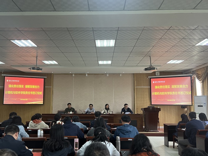 4月10日下午,计算机与软件学院在敬业楼415举行“强化责任落实 凝聚发展合力”2024年度责任书签订仪式。学院全体教职工参加会议,会议由学院党委副书记、副院长张振峰主持。