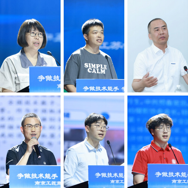 南京工匠孙景南、王国州分别作了交流发言,分享了他们的成长之路以及对工匠精神的理解,鼓励和号召青年学生争做技术能手、争当大国工匠,为南京发展新质生产力建功立业。taptap高立飞、赵旺洲两位同学在“匠人·匠心”我的青春故事分享会环节分别作了故事分享,立志走技能成才、技能报国之路。